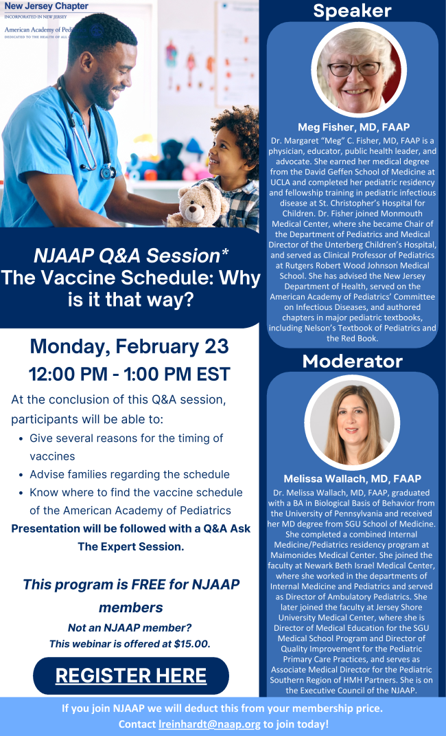NJAAP Q&A Session - The Vaccine Schedule: Why is it that way? on Monday, February 23, 2026 at 12 PM EST.